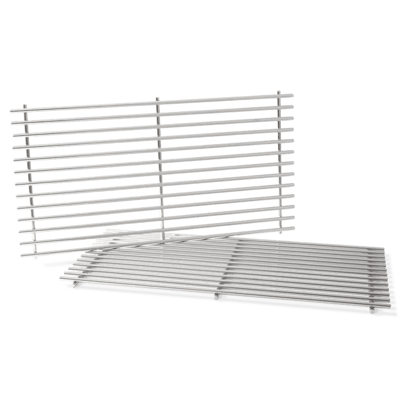 SpecificationsTwo piece Stainless Steel cooking grate set.