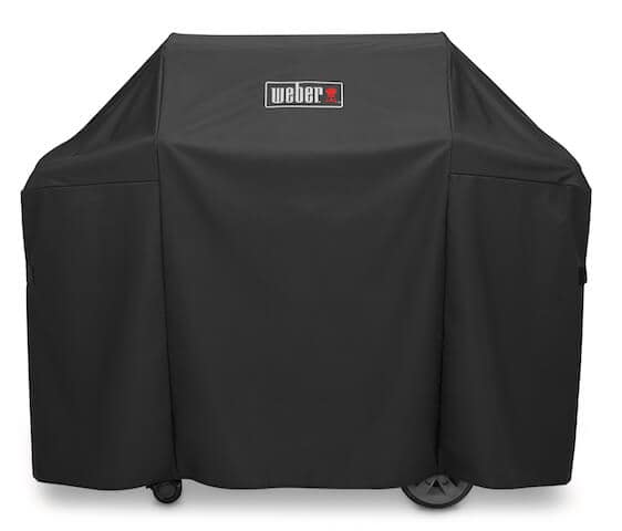 Keep your investment protected and safeguard your Weber Genesis II Gas Grill with this polyester Weber Grill Cover. Its revolutionary design has the flexibility to make grill cover-ups a cinch, yet has a vinyl-like ruggedness that will withstand inclement weather. A hook and loop strap on each side tightens the cover below the Genesis side tables, keeping your grill thoroughly protected even on the windiest days.All-weather fabric is water resistant, UV resistant and breathable, protecting grills from the elements. Velcro straps added to secure to the grill, preventing cover from blowing away.UV inhibitors in fabric resist fadingBreathable and water resistant to help protect grill from the elementsFastening straps keep the cover in place3 year limited warrantyFits: Genesis II and Genesis II LX 400 series gas grills