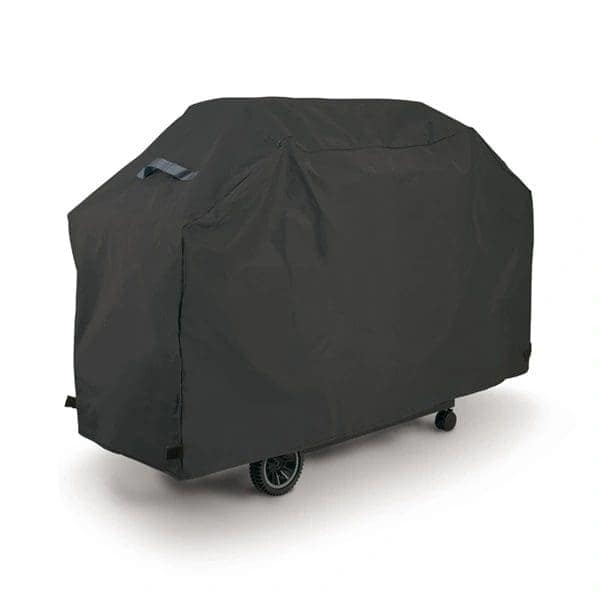61” x 29” x 42” Deluxe PEVA / Polyester Grill Cover with side handles, hanging loop and hook and loop closures.