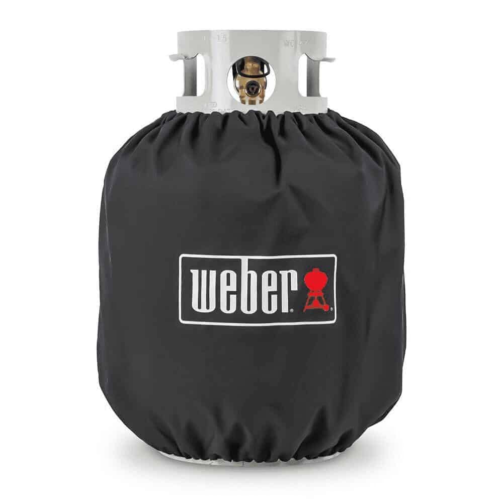 Weber Tank Cover, 7137• UV inhibitors in fabric resists fading• Breathable, weather resistant fabric• Protects cylinder from the elements• Drawstring keeps the cover in place• Fits standard size 20 lb. LP tank(tank sold separately)