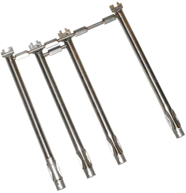 Stainless steel Weber Spirit “330 and 335” Series “Propane (LP) AND Natural Gas” burner set, model years 2013-Current (with “Up Front” controls). Set includes the three main burners, “sear burner” and two crossover burners. Left and right main burners measure 18″ long, the center main and sear burner measure 17-3/4″ long. The main crossover burner tube measures 15-1/4″ long and the sear burner crossover tube measures 3-7/8″ long. Installation instructions included. Replaces Part 69299. Genuine Weber Part.